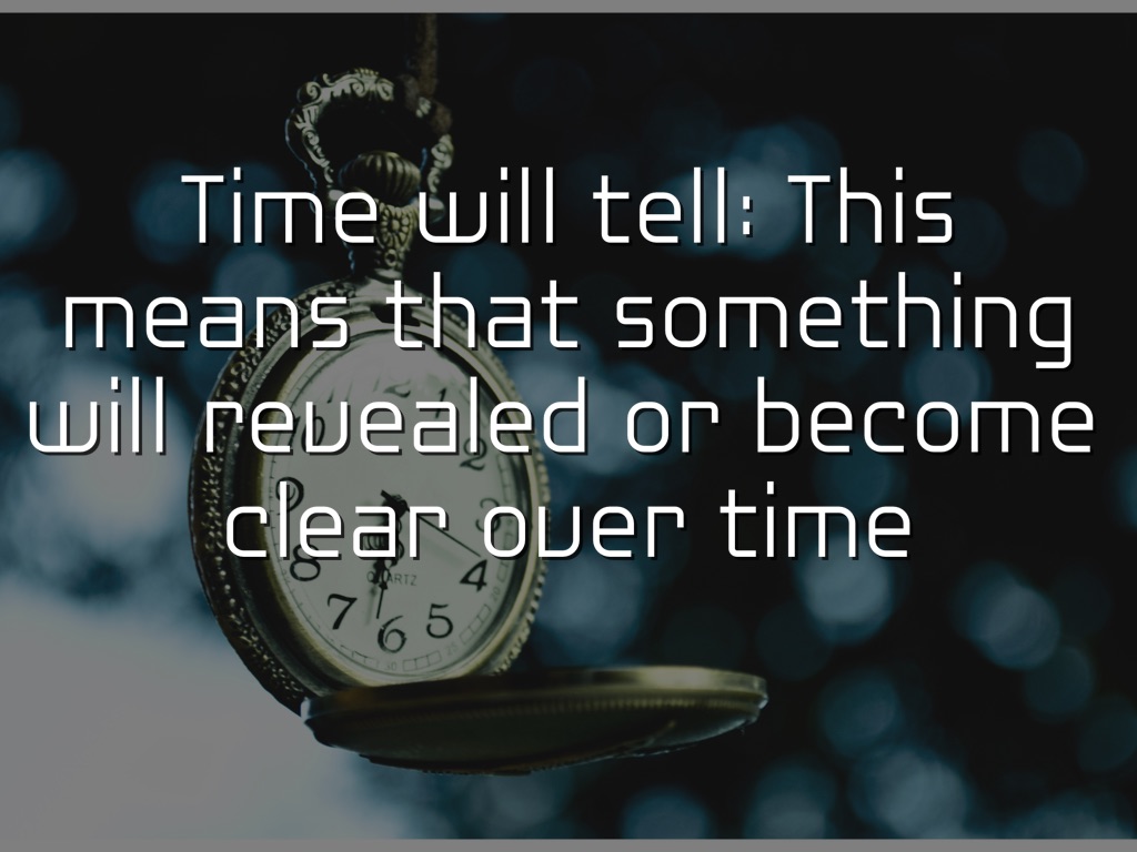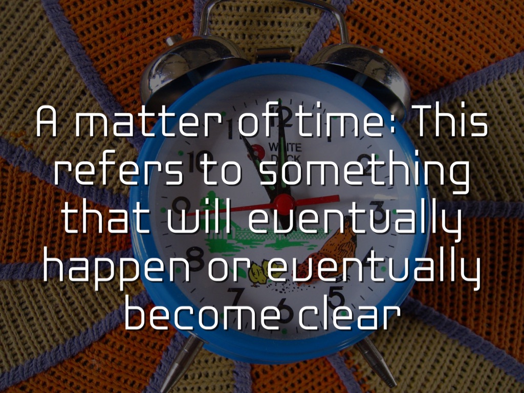 A matter of time: This refers to something that will eventually happen or eventually become clear