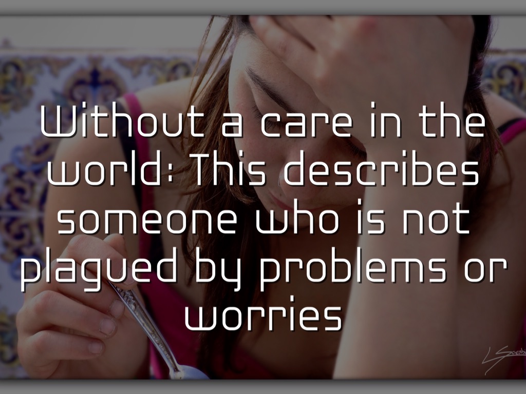 Without a care in the world: This describes someone who is not plagued by problems or worries