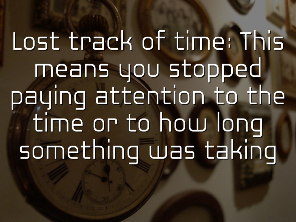Lost track of time: This means you stopped paying attention to the time or to how long something was taking