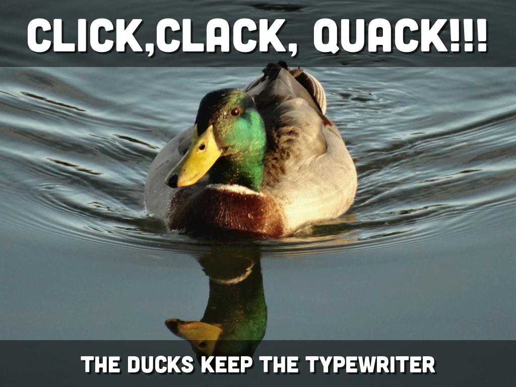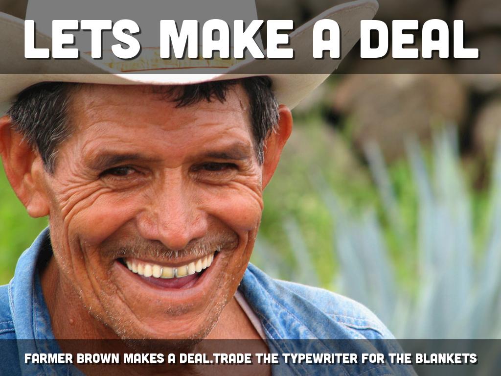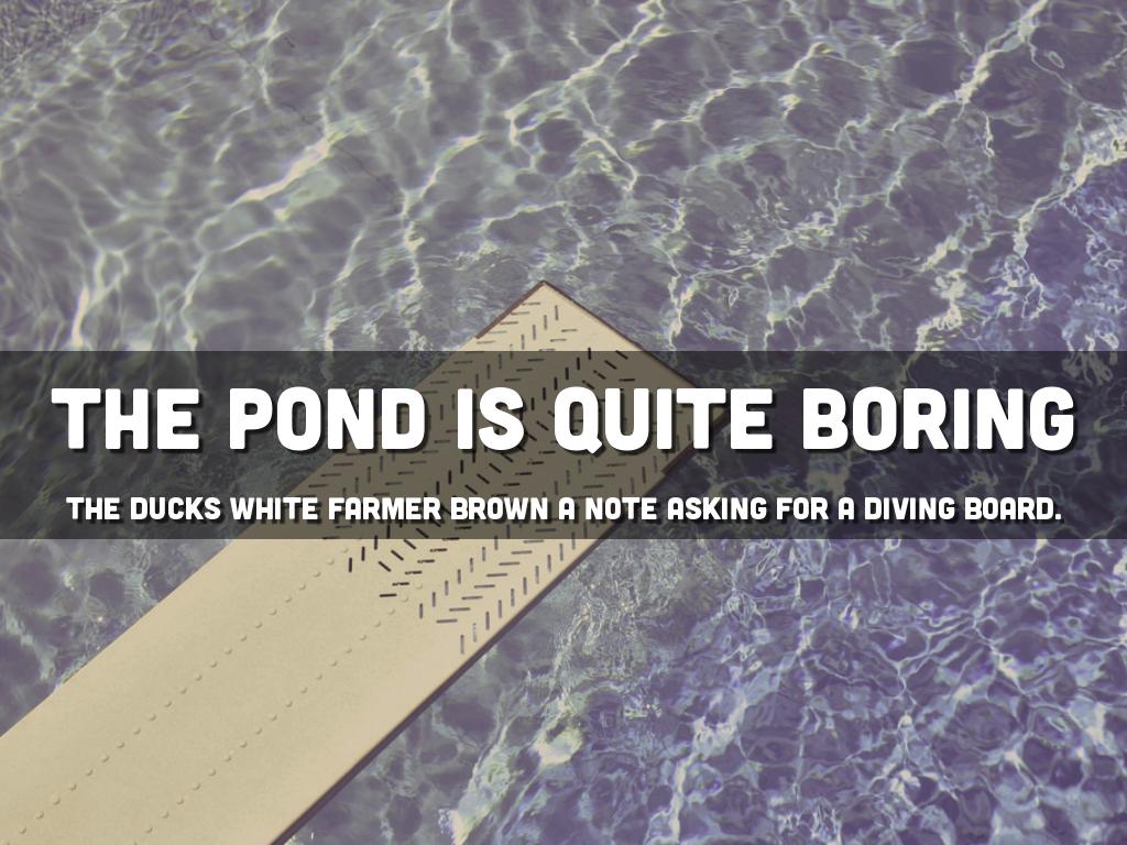 THE DUCKS WHITE FARMER BROWN A NOTE ASKING FOR A DIVING BOARD.
