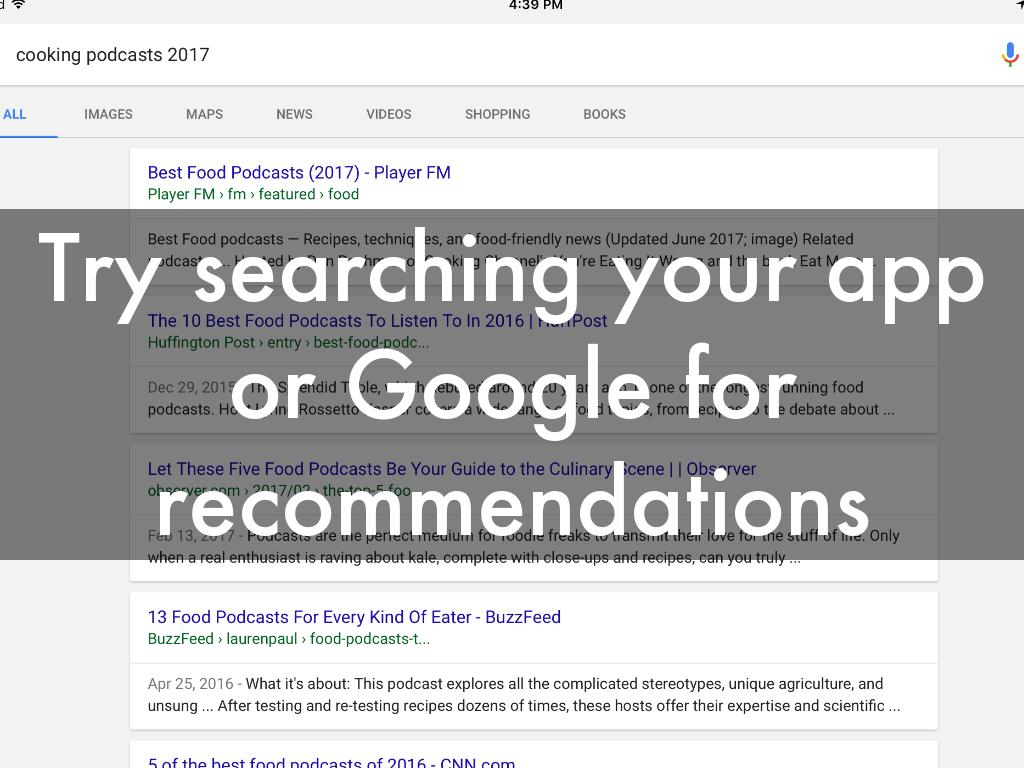 SUCH AS DOWNCAST, AVAILABLE IN APP STORE