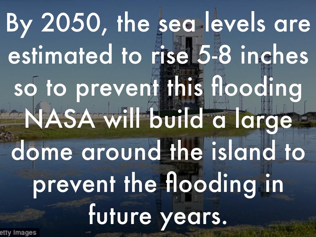By 2050, the sea levels are estimated to rise 5-8 inches so to prevent this flooding NASA will build a large dome around the island to prevent the flooding in future years.