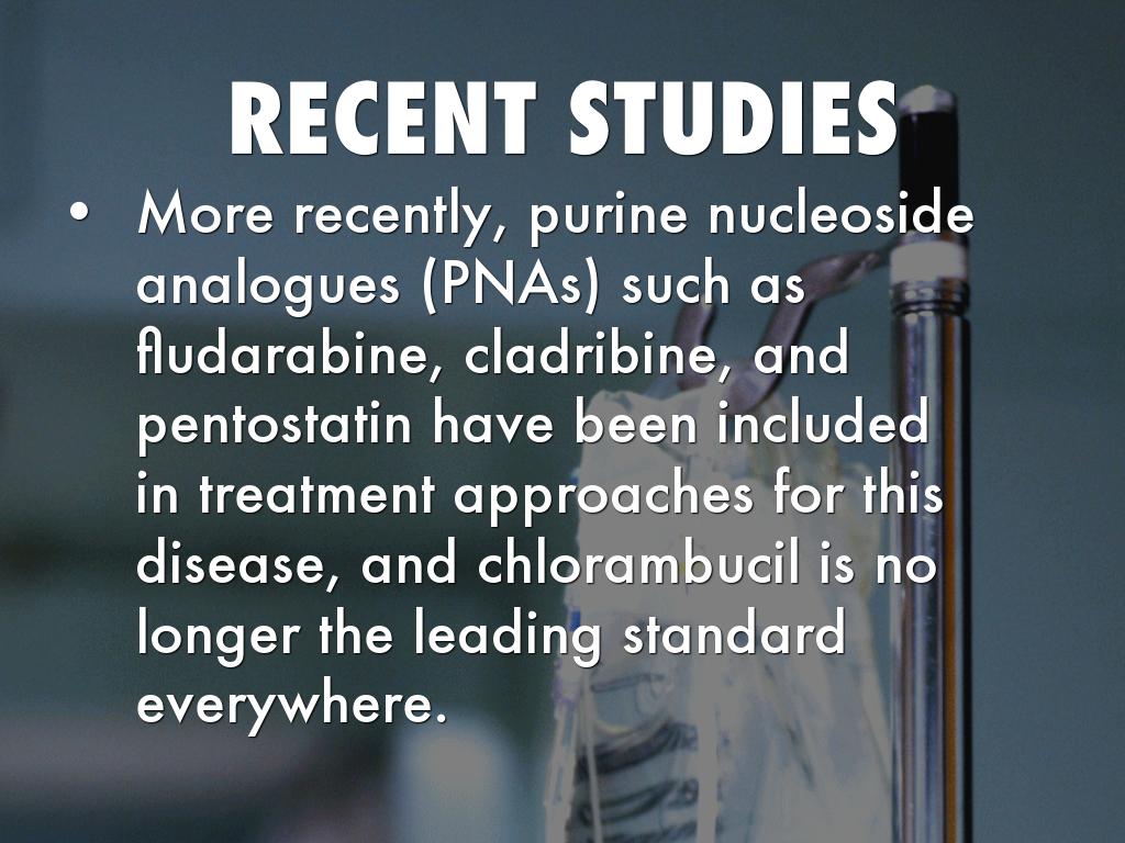 • More recently, purine nucleoside analogues (PNAs) such as fludarabine, cladribine, and pentostatin have been included in treatment approaches for this disease, and chlorambucil is no longer the leading standard everywhere.