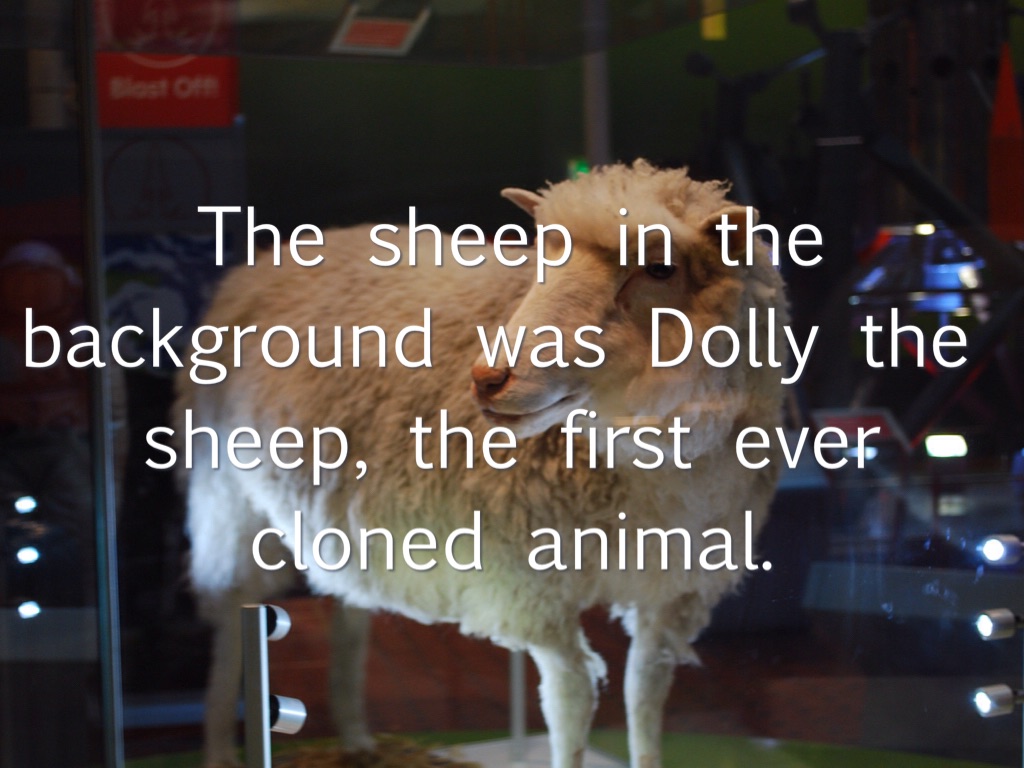 The sheep in the background was Dolly the sheep, the first ever cloned animal.