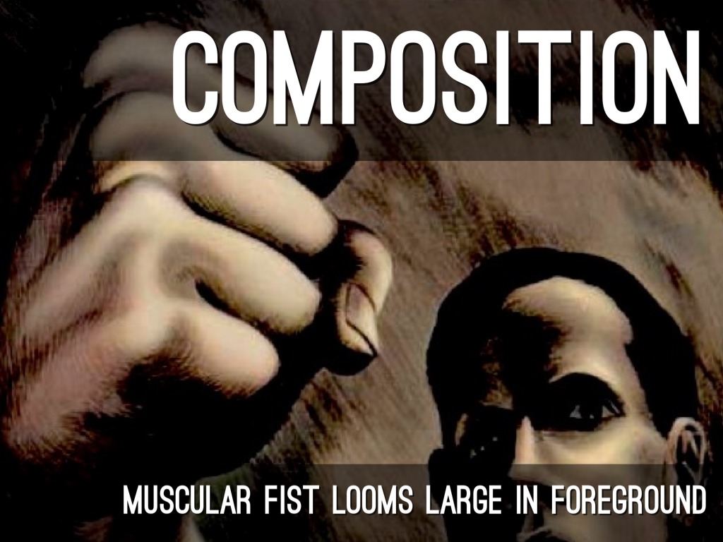 MUSCULAR FIST LOOMS LARGE IN FOREGROUND