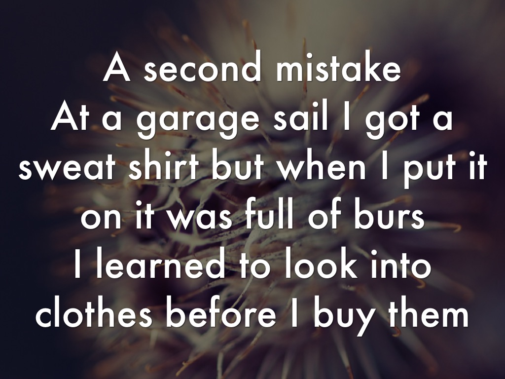At a garage sail I got a sweat shirt but when I put it on it was full of burs