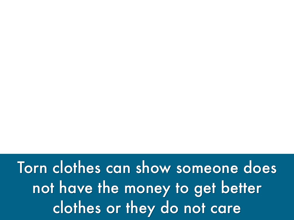 Torn clothes can show someone does not have the money to get better clothes or they do not care