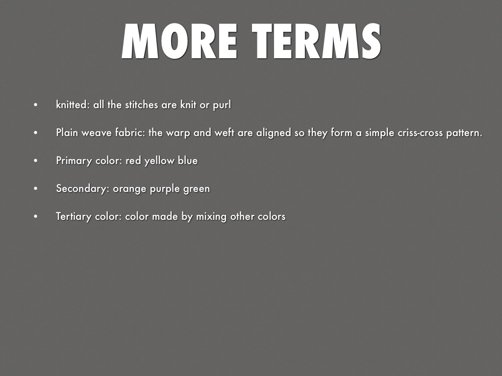 - Plain weave fabric: the warp and weft are aligned so they form a simple criss-cross pattern.