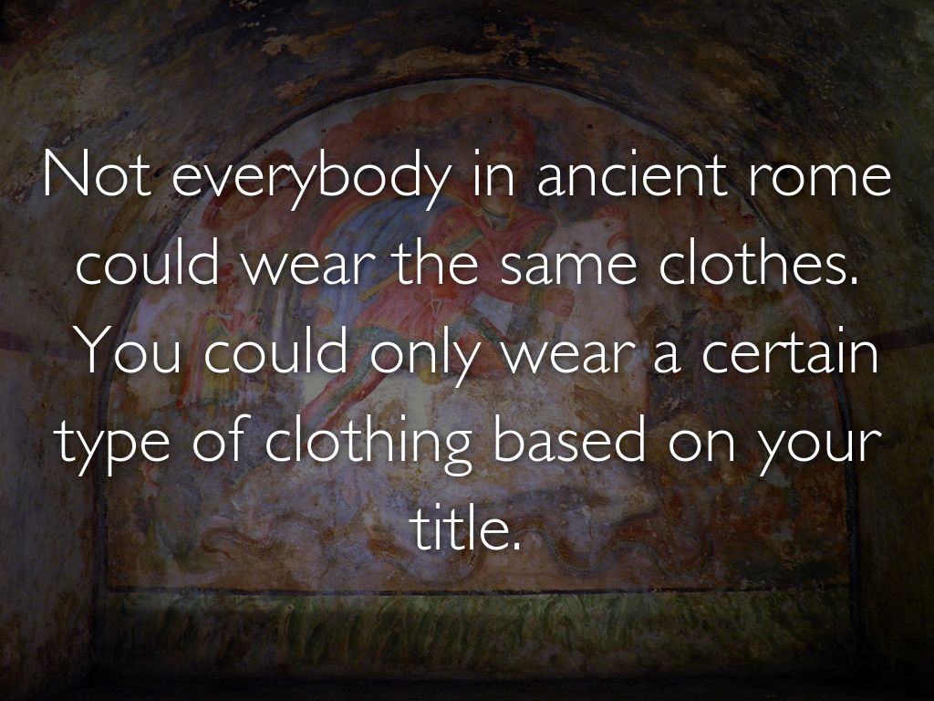 Not everybody in ancient rome could wear the same clothes. You could only wear a certain type of clothing based on your title.