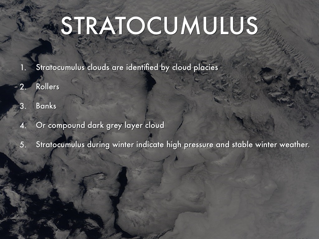 Stratocumulus during winter indicate high pressure and stable winter weather.
