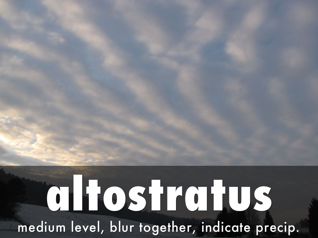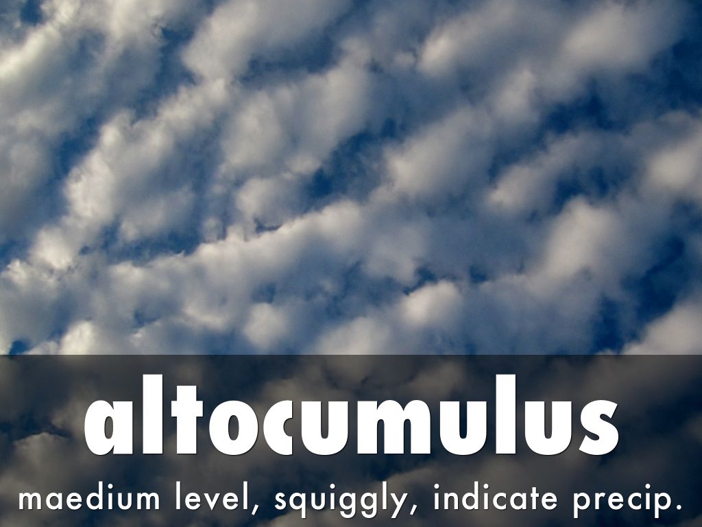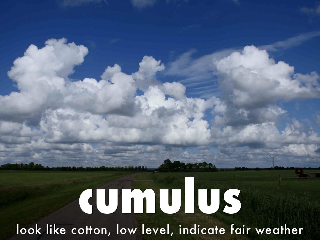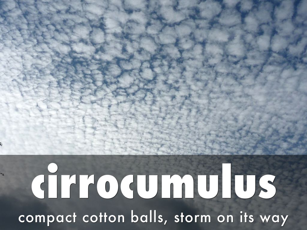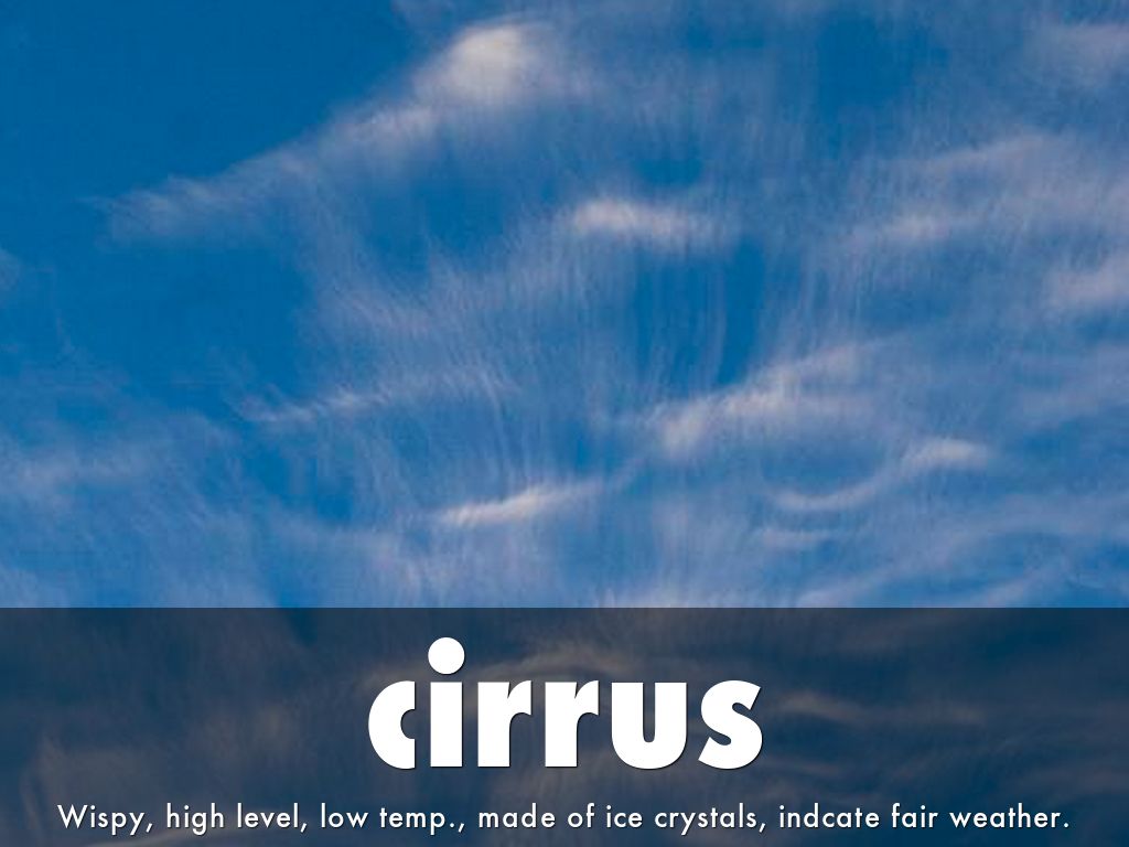 Wispy, high level, low temp., made of ice crystals, indcate fair weather.