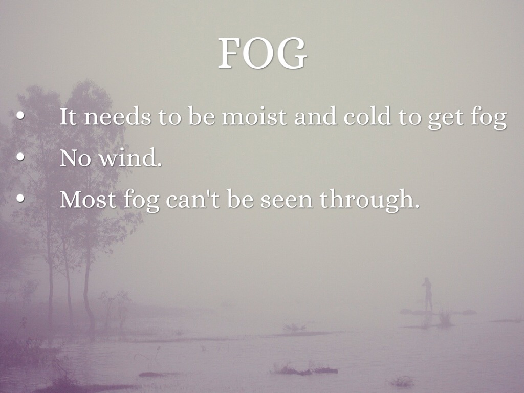 • It needs to be moist and cold to get fog