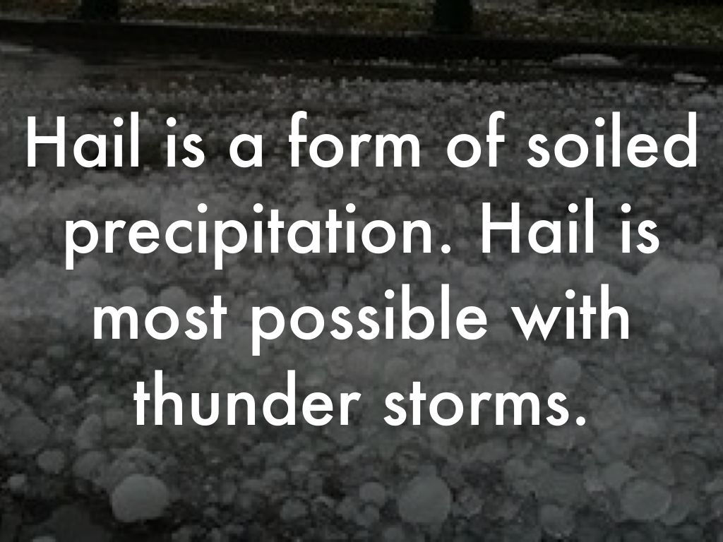 Hail is a form of soiled precipitation. Hail is most possible with thunder storms.