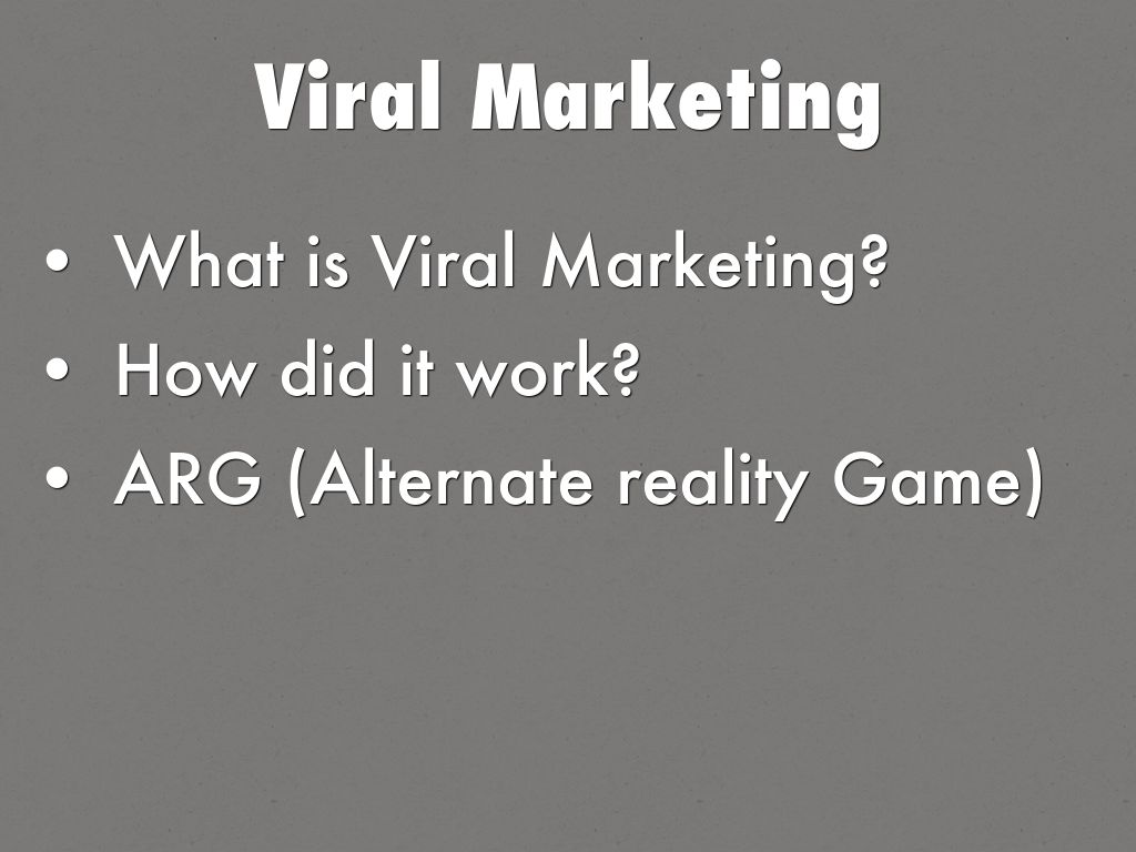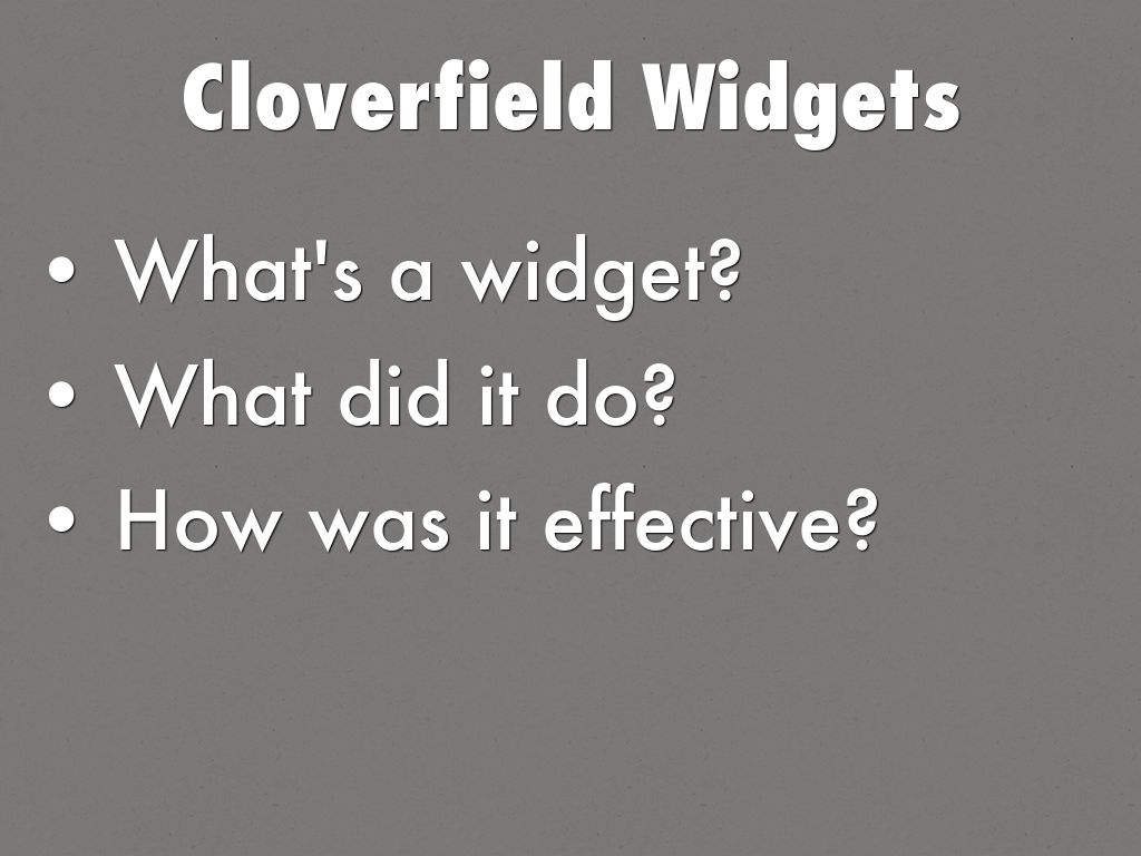 • The marketing strategy for cloverfield was viral marketing and so they had to come up with ways to include and get people talking. They decided to put together an ARG (Alternate Reality Game). It includes