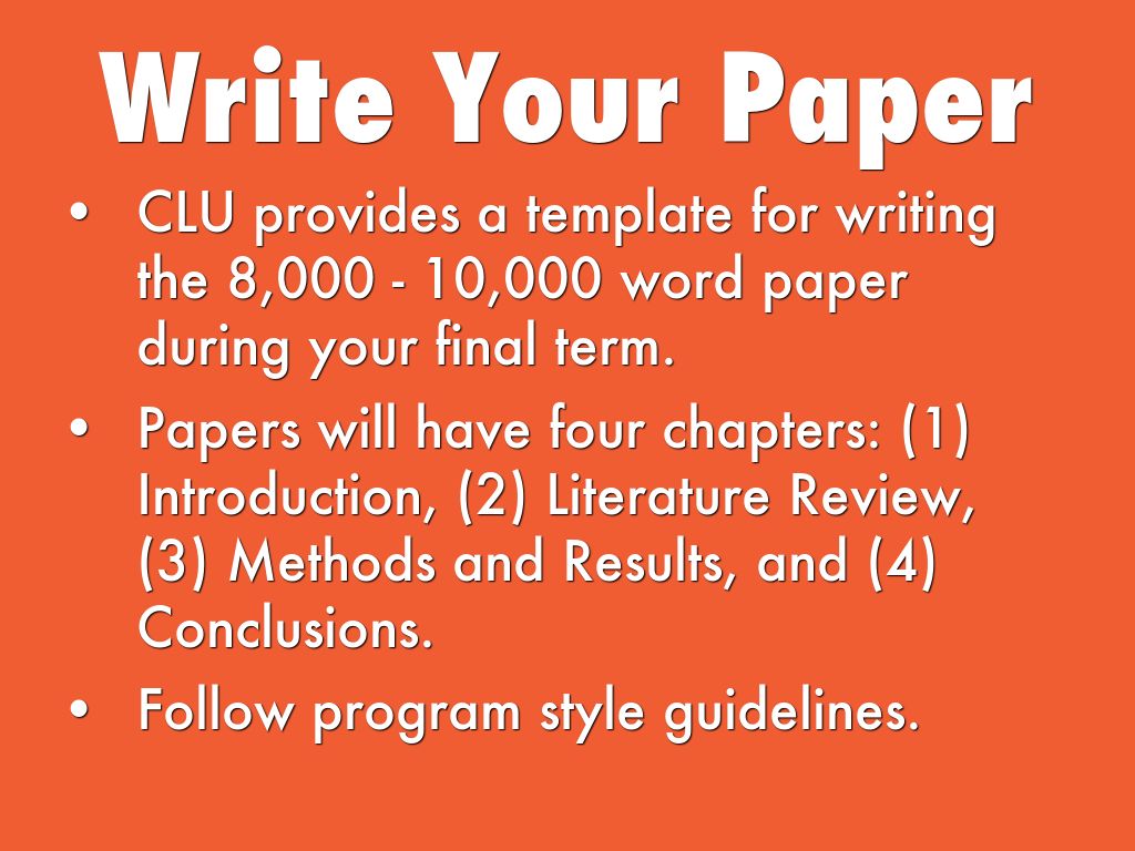 - CLU provides a template for writing the 8,000 - 10,000 word paper during your final term.