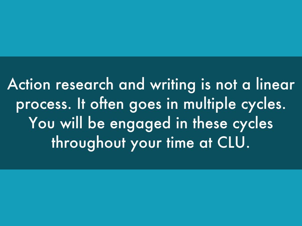 Action research and writing is not a linear process. It often goes in multiple cycles. You will be engaged in these cycles throughout your time at CLU.