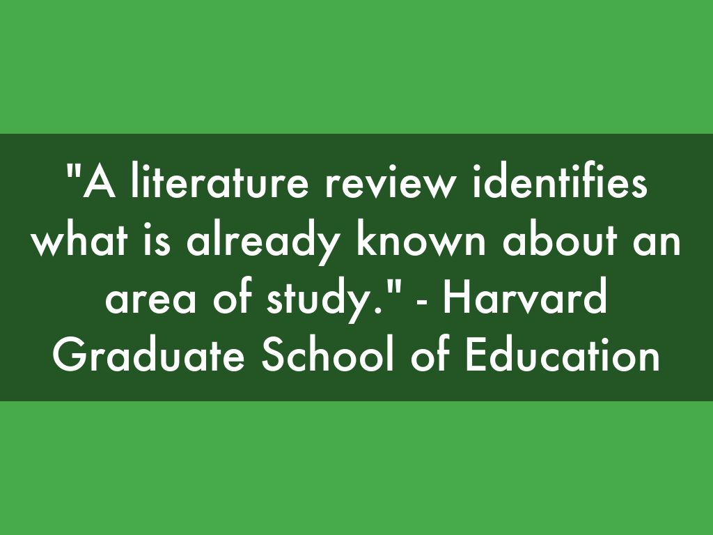 "A literature review identifies what is already known about an area of study." - Harvard Graduate School of Education