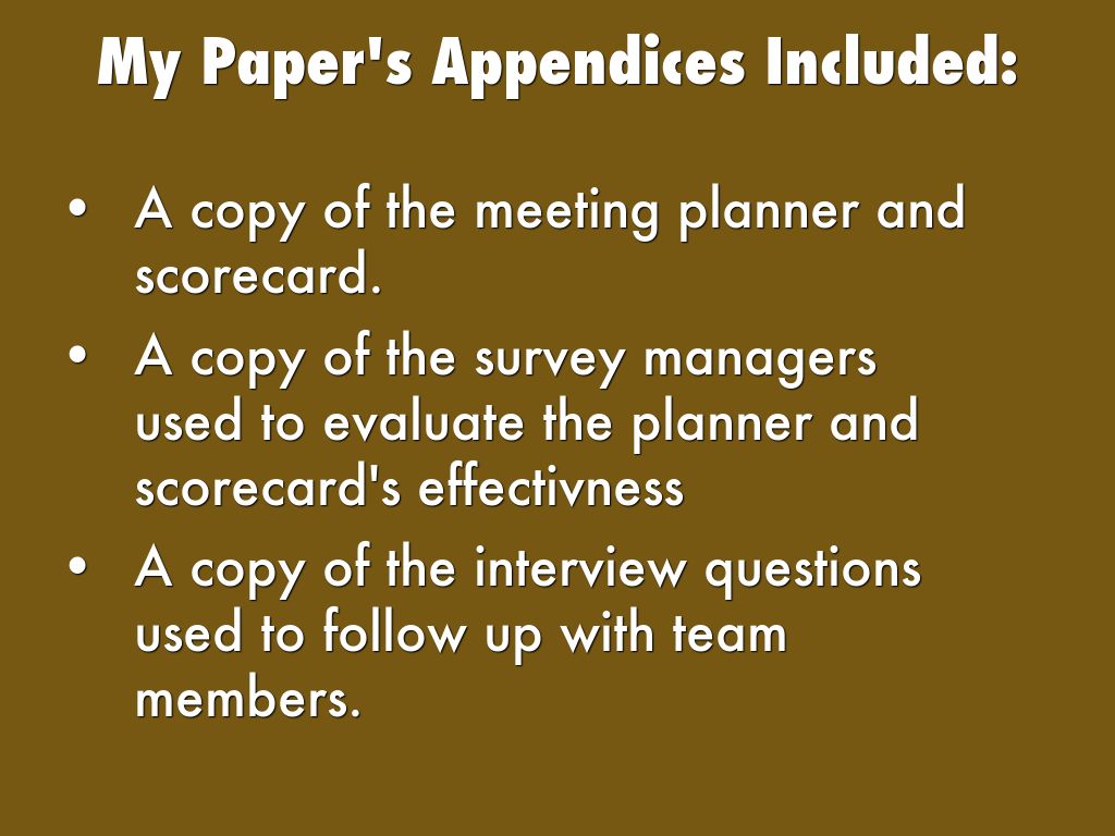 - A copy of the survey managers used to evaluate the planner and scorecard's effectivness