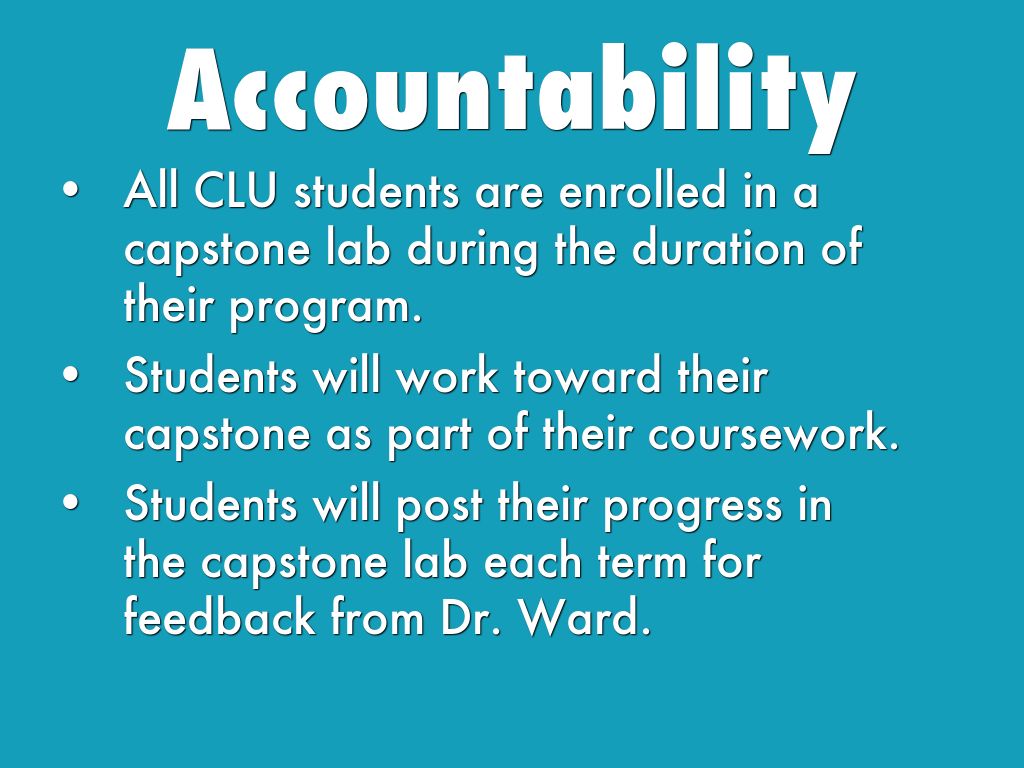 - All CLU students are enrolled in a capstone lab during the duration of their program.