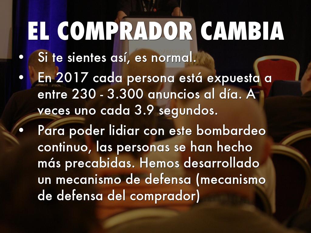 Para poder lidiar con este bombardeo continuo, las personas se han hecho más precabidas. Hemos desarrollado un mecanismo de defensa (mecanismo de defensa del comprador)