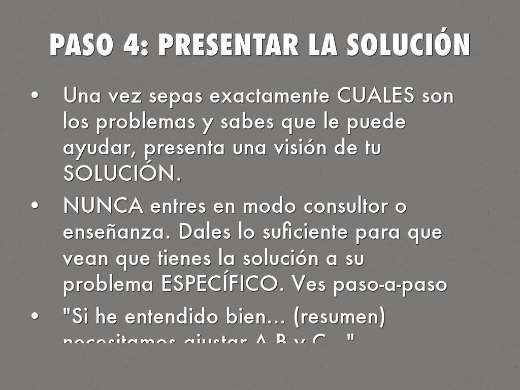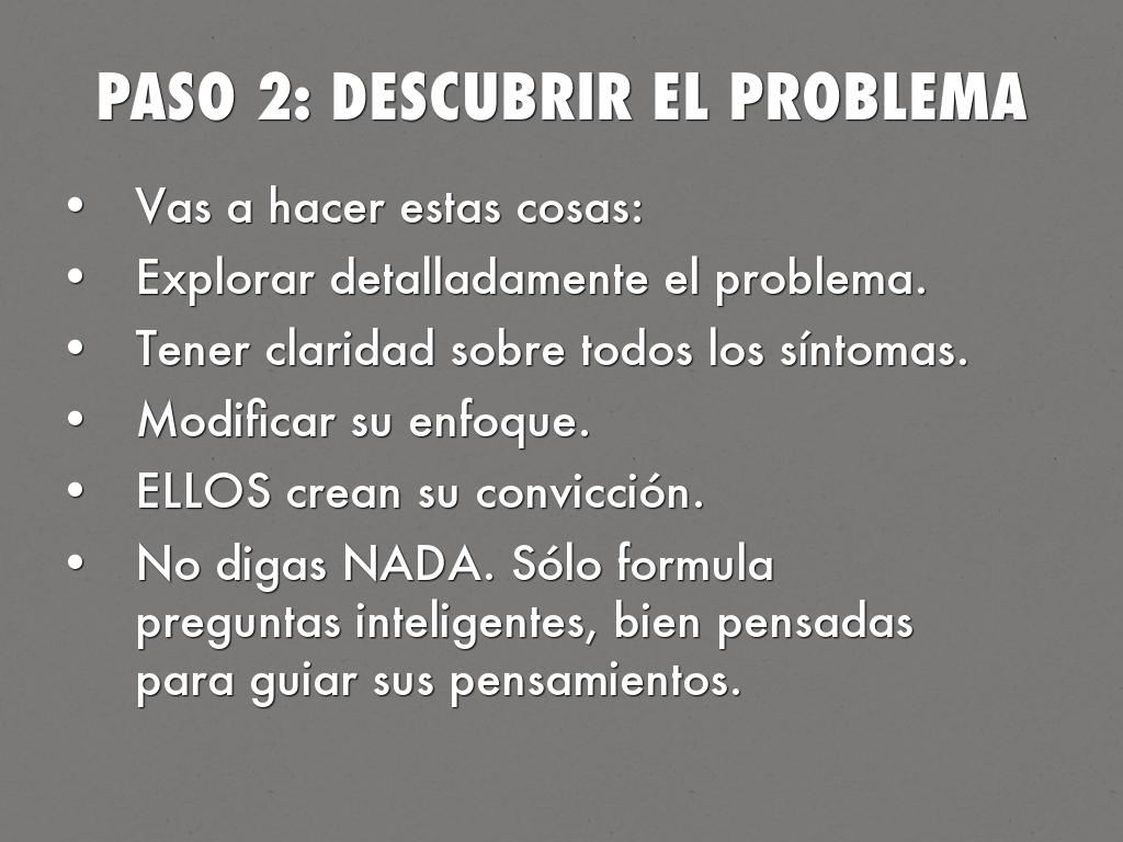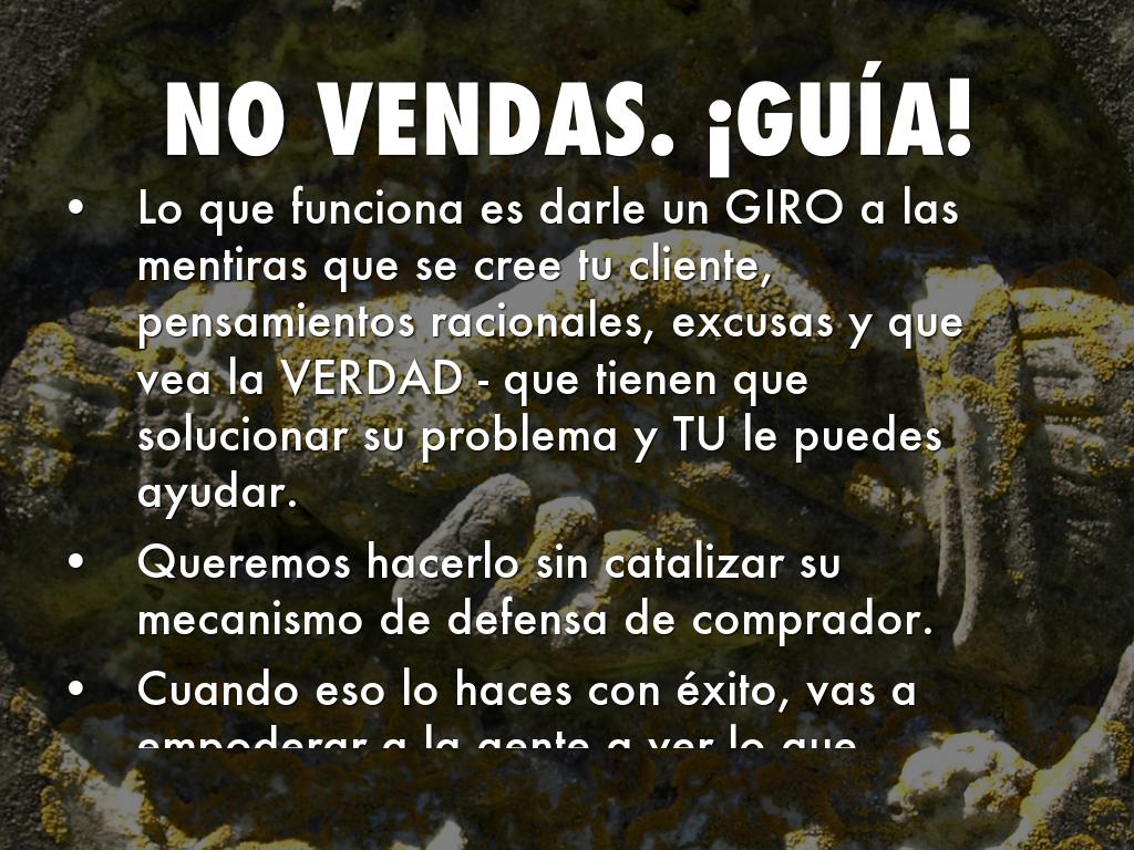 Lo que funciona es darle un GIRO a las mentiras que se cree tu cliente, pensamientos racionales, excusas y que vea la VERDAD - que tienen que solucionar su problema y TU le puedes ayudar.