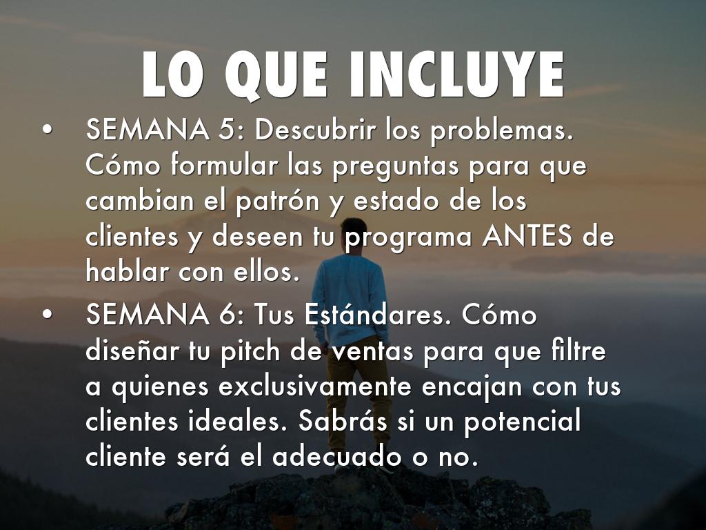 SEMANA 6: Tus Estándares. Cómo diseñar tu pitch de ventas para que filtre a quienes exclusivamente encajan con tus clientes ideales. Sabrás si un potencial cliente será el adecuado o no.