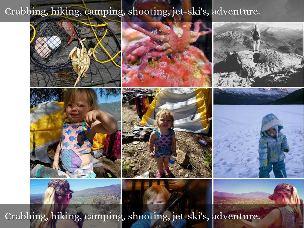 Crabbing, hiking, camping, shooting, jet-ski's, adventure.