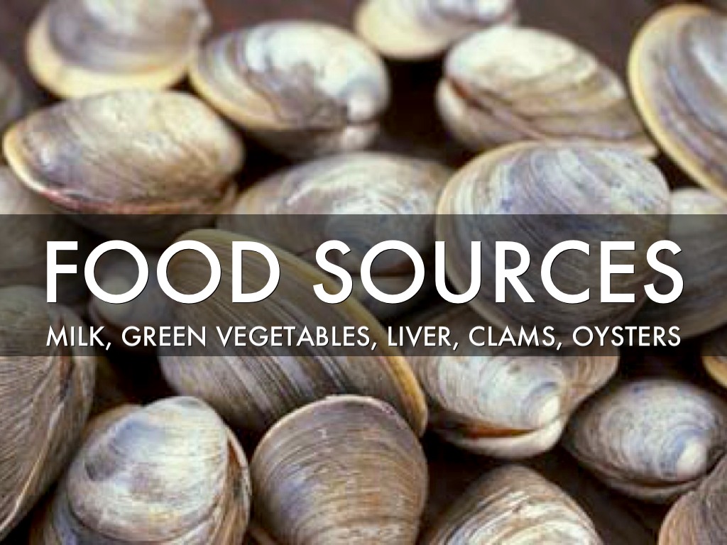 MILK, GREEN VEGETABLES, LIVER, CLAMS, OYSTERS