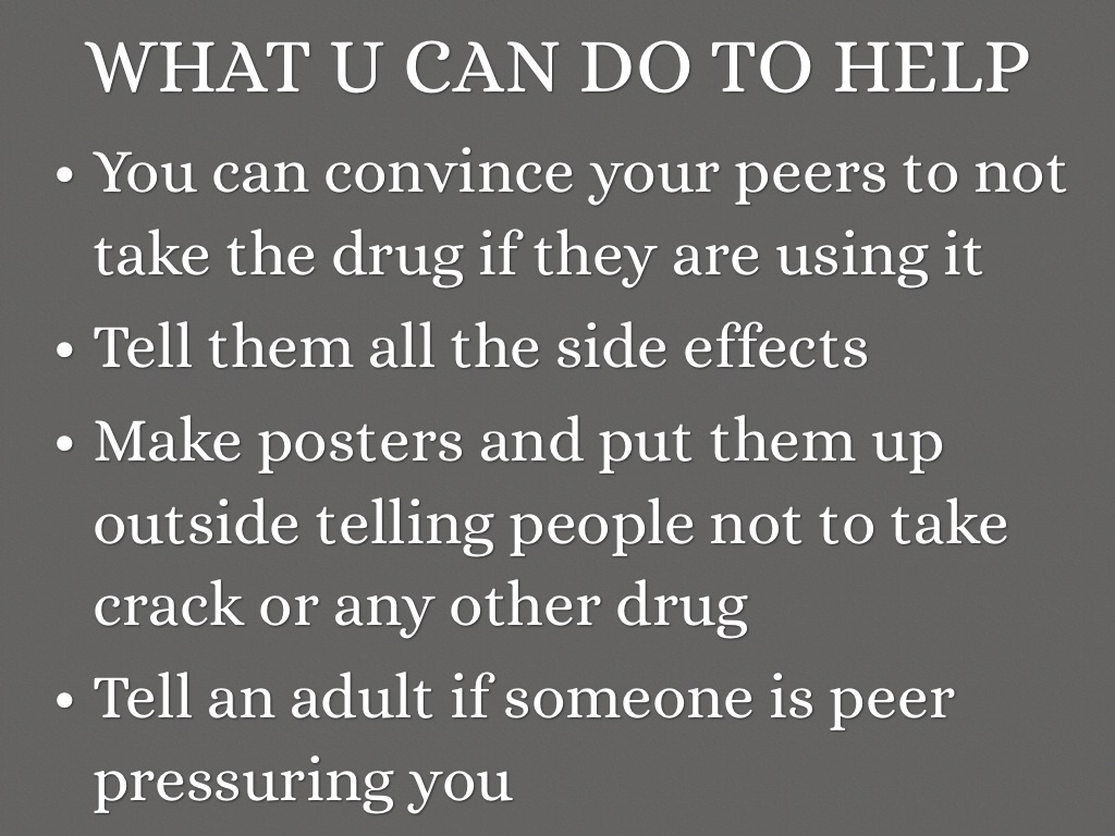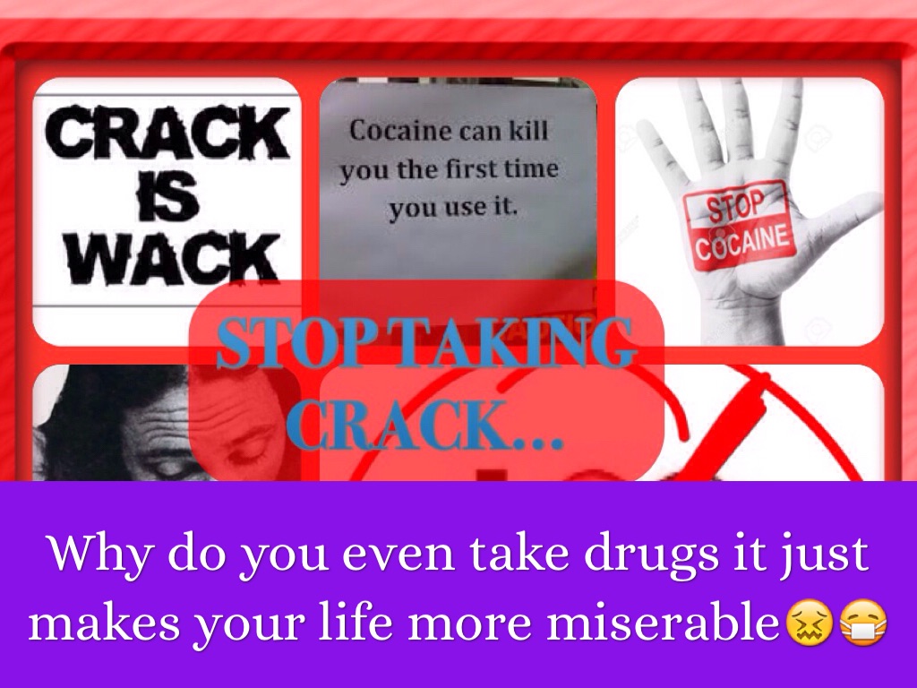 Make posters and put them up outside telling people not to take crack or any other drug