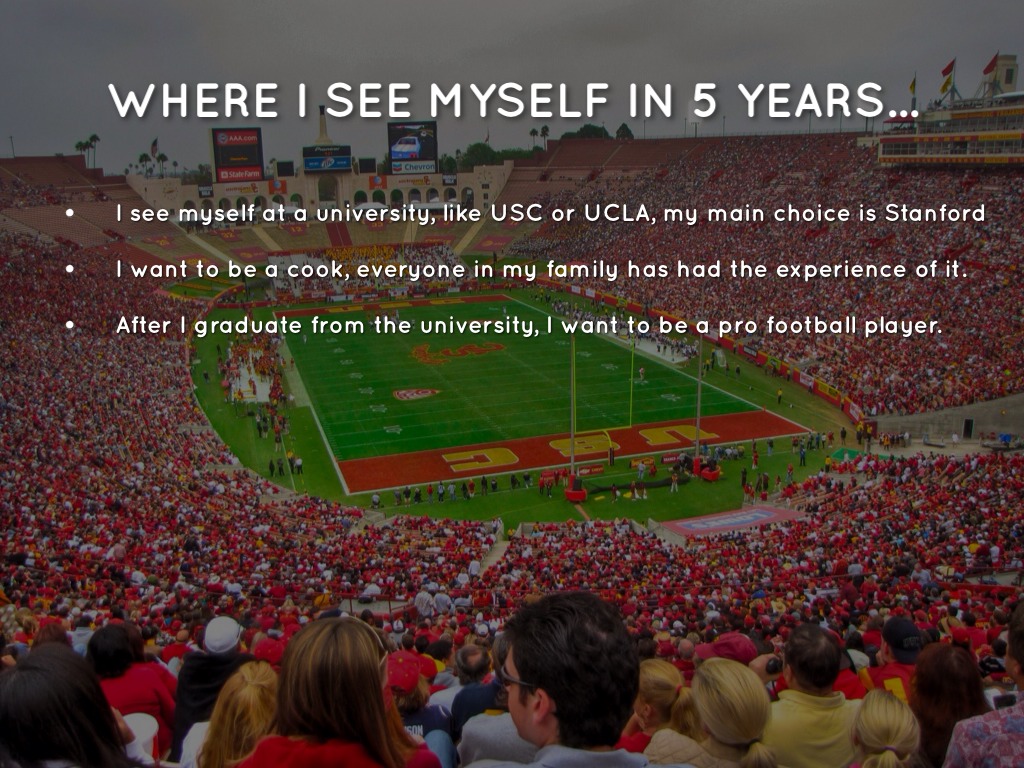 I see myself at a university, like USC or UCLA, my main choice is Stanford