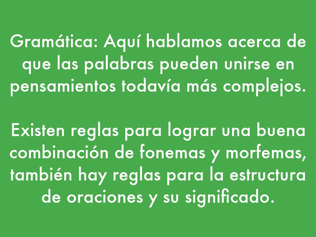 Gramática: Aquí hablamos acerca de que las palabras pueden unirse en pensamientos todavía más complejos.