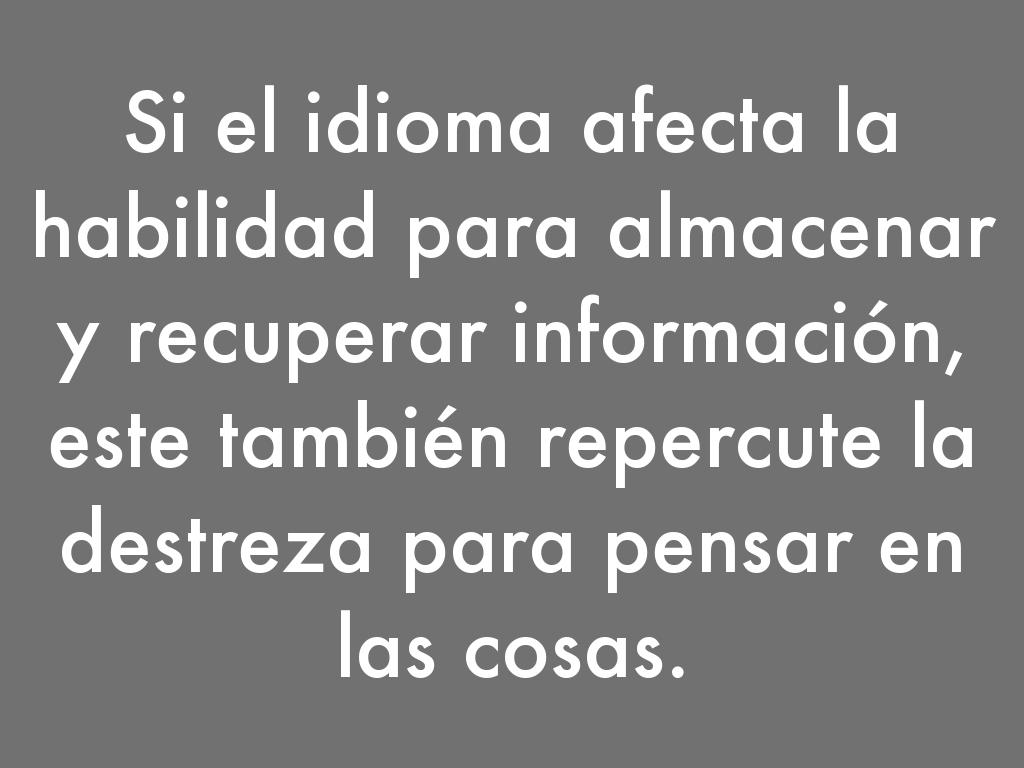 Si el idioma afecta la habilidad para almacenar y recuperar información, este también repercute la destreza para pensar en las cosas.
