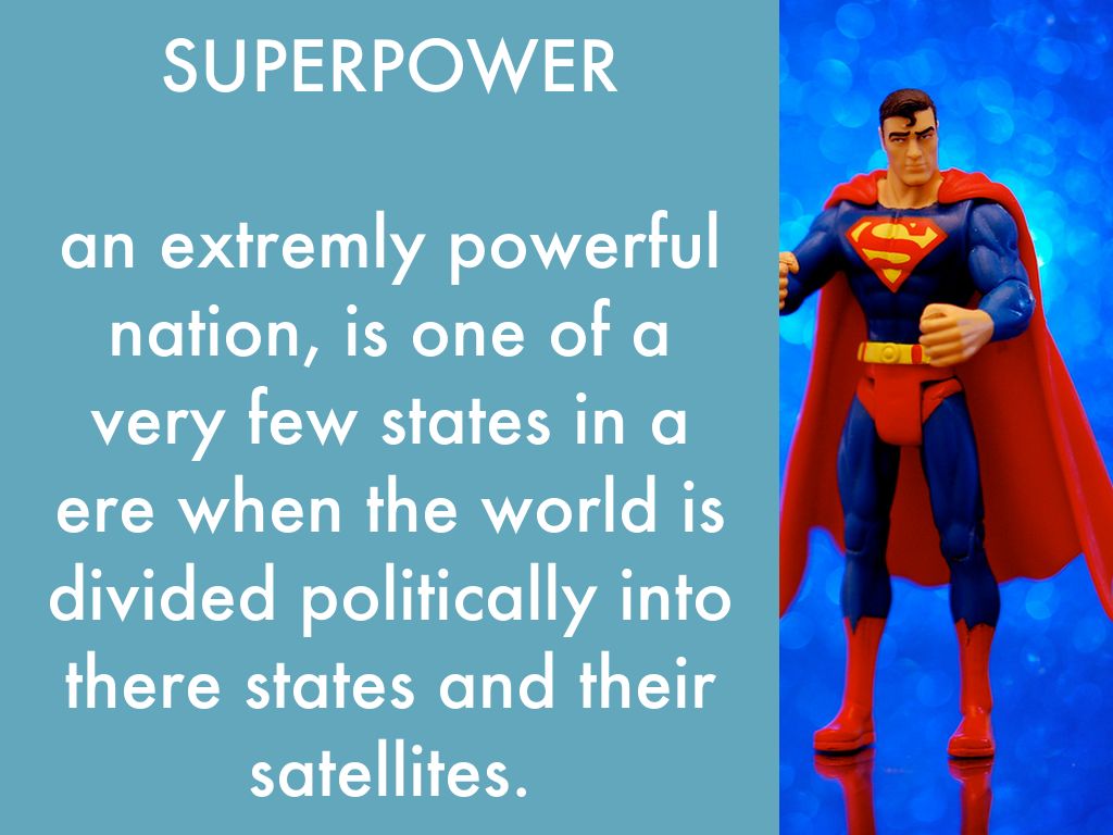 an extremly powerful nation, is one of a very few states in a ere when the world is divided politically into there states and their satellites.
