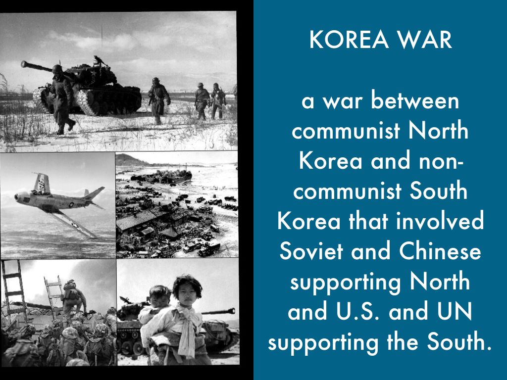 a war between communist North Korea and non-communist South Korea that involved Soviet and Chinese supporting North and U.S. and UN supporting the South.