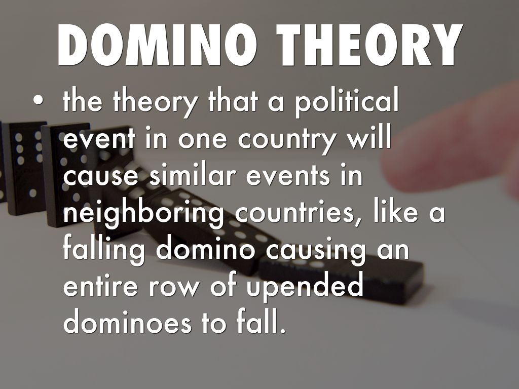 • the theory that a political event in one country will cause similar events in neighboring countries, like a falling domino causing an entire row of upended dominoes to fall.