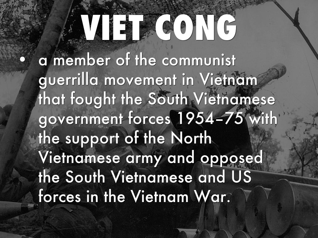 • a member of the communist guerrilla movement in Vietnam that fought the South Vietnamese government forces 1954–75 with the support of the North Vietnamese army and opposed the South Vietnamese and US forces in the Vietnam War.