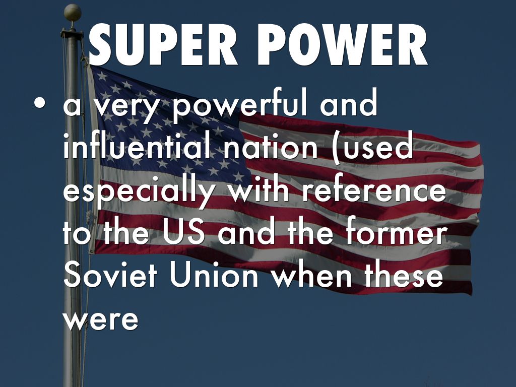 • a very powerful and influential nation (used especially with reference to the US and the former Soviet Union when these were