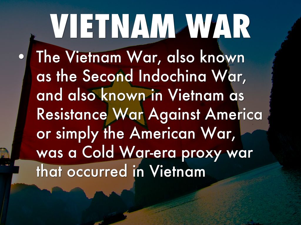 • The Vietnam War, also known as the Second Indochina War, and also known in Vietnam as Resistance War Against America or simply the American War, was a Cold War-era proxy war that occurred in Vietnam