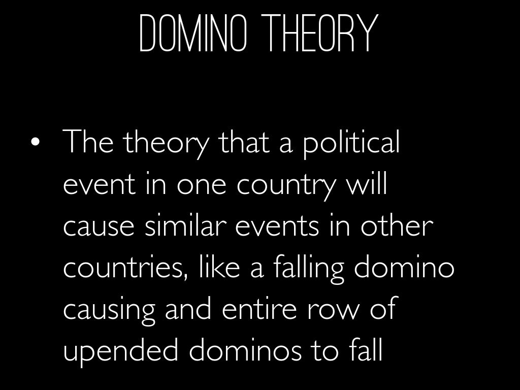 The theory that a political event in one country will cause similar events in other countries, like a falling domino causing and entire row of upended dominos to fall