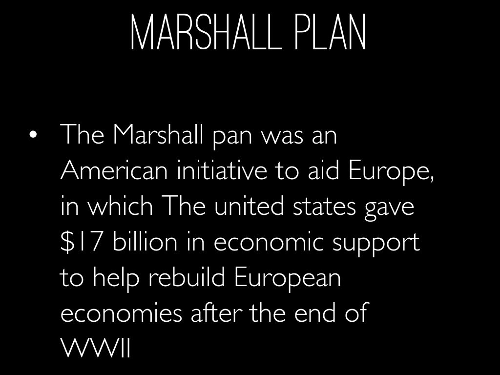 The Marshall pan was an American initiative to aid Europe, in which The united states gave $17 billion in economic support to help rebuild European economies after the end of WWII