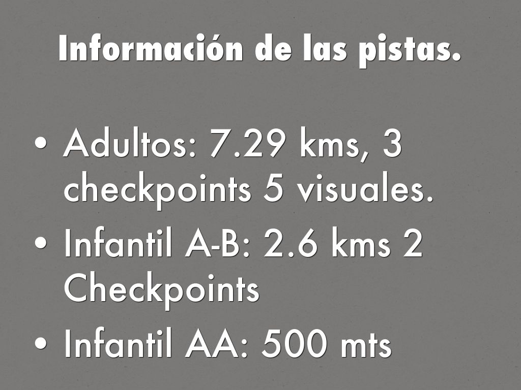 Adultos: 7.29 kms, 3 checkpoints 5 visuales.