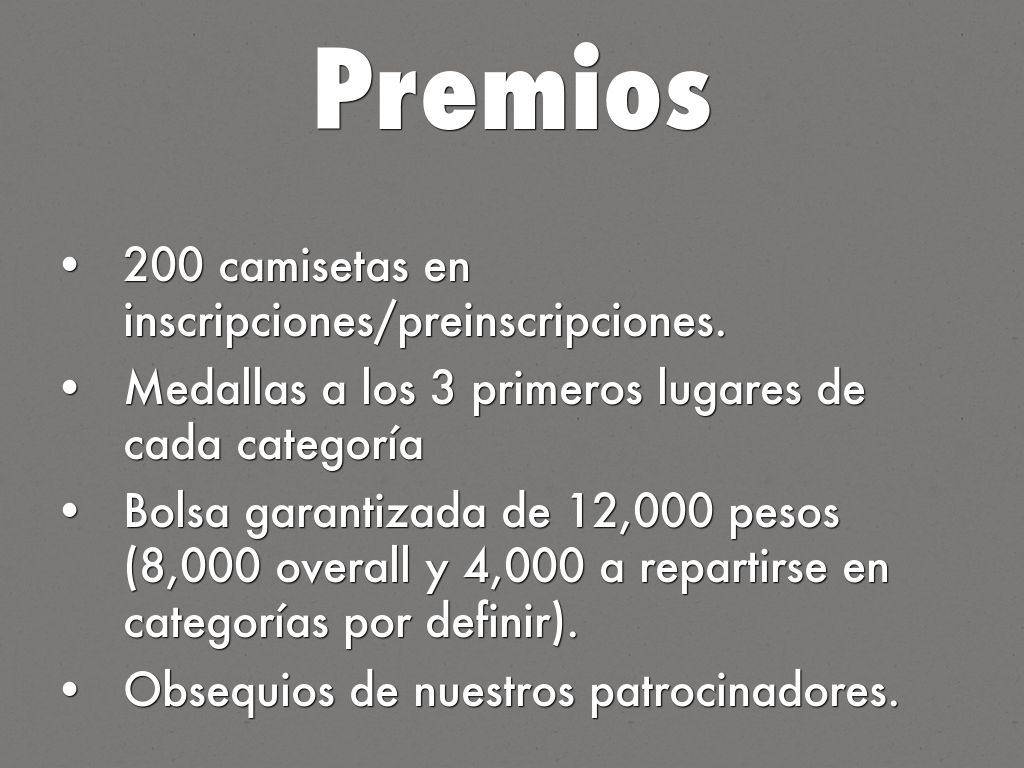 Bolsa garantizada de 12,000 pesos (8,000 overall y 4,000 a repartirse en categorías por definir).