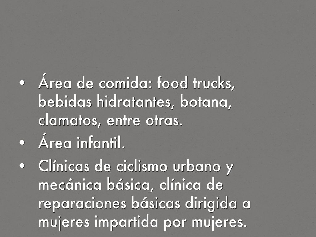 Área de comida: food trucks, bebidas hidratantes, botana, clamatos, entre otras.