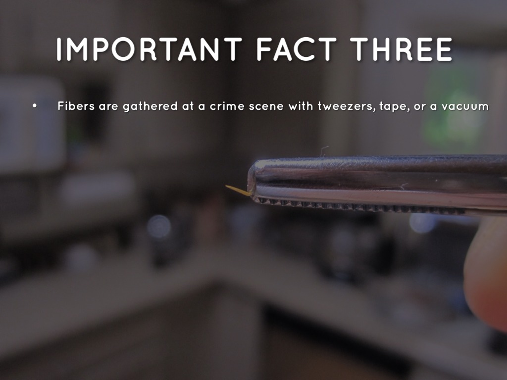 Fibers are gathered at a crime scene with tweezers, tape, or a vacuum