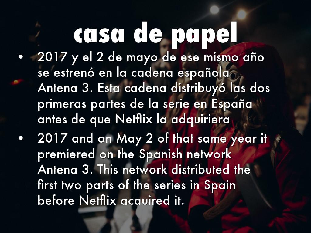 2017 y el 2 de mayo de ese mismo año se estrenó en la cadena española Antena 3. Esta cadena distribuyó las dos primeras partes de la serie en España antes de que Netflix la adquiriera