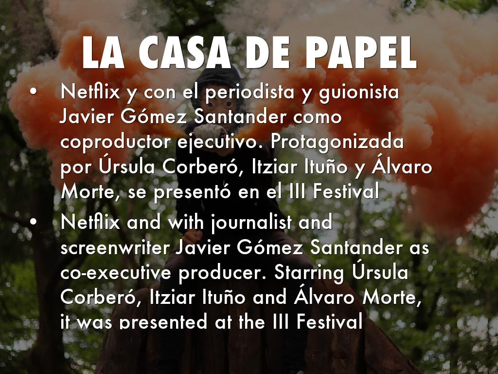 Netflix and with journalist and screenwriter Javier Gómez Santander as co-executive producer. Starring Úrsula Corberó, Itziar Ituño and Álvaro Morte, it was presented at the III Festival