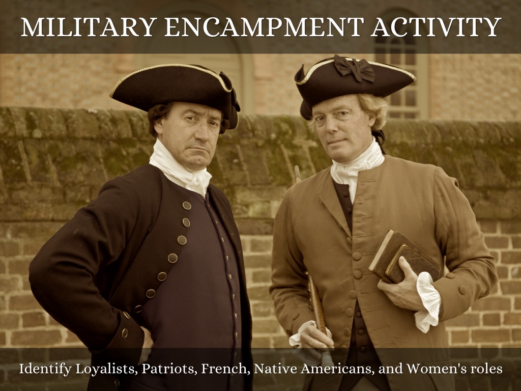Identify Loyalists, Patriots, French, Native Americans, and Women's roles