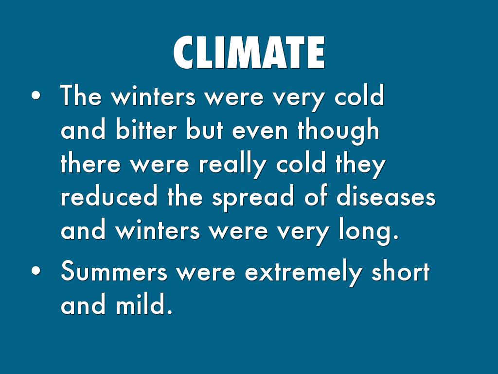 - The winters were very cold and bitter but even though there were really cold they reduced the spread of diseases and winters were very long.