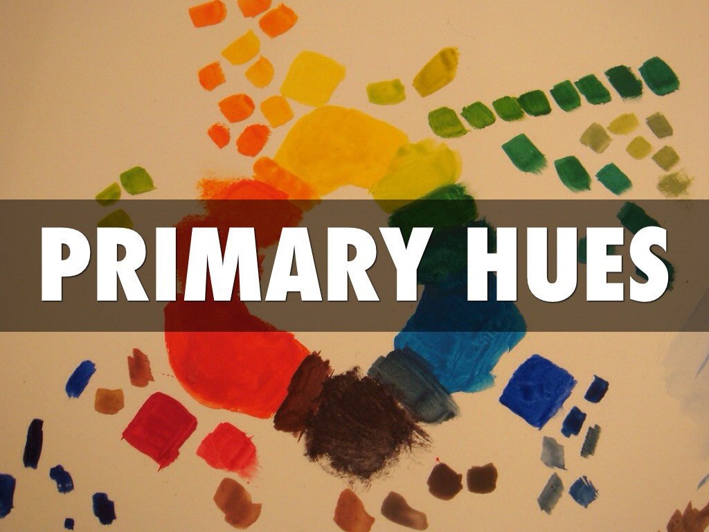 The primary hues are red, blue, and yellow. They are the colors of which all the other colors are made.