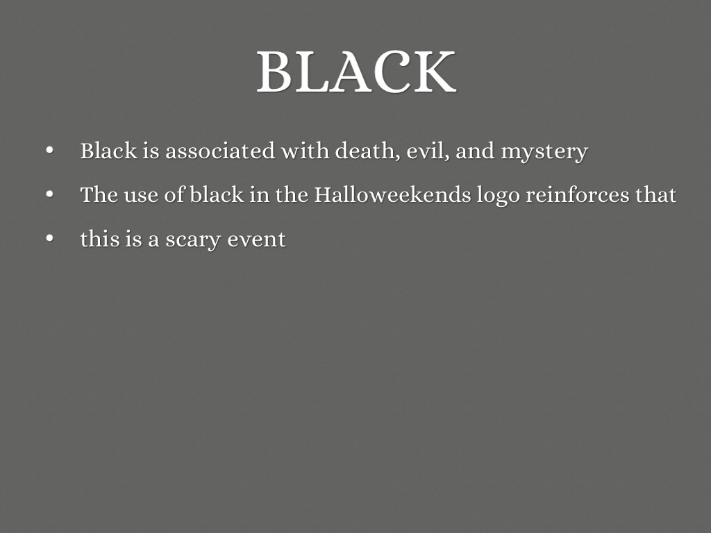 The use of black in the Halloweekends logo reinforces that